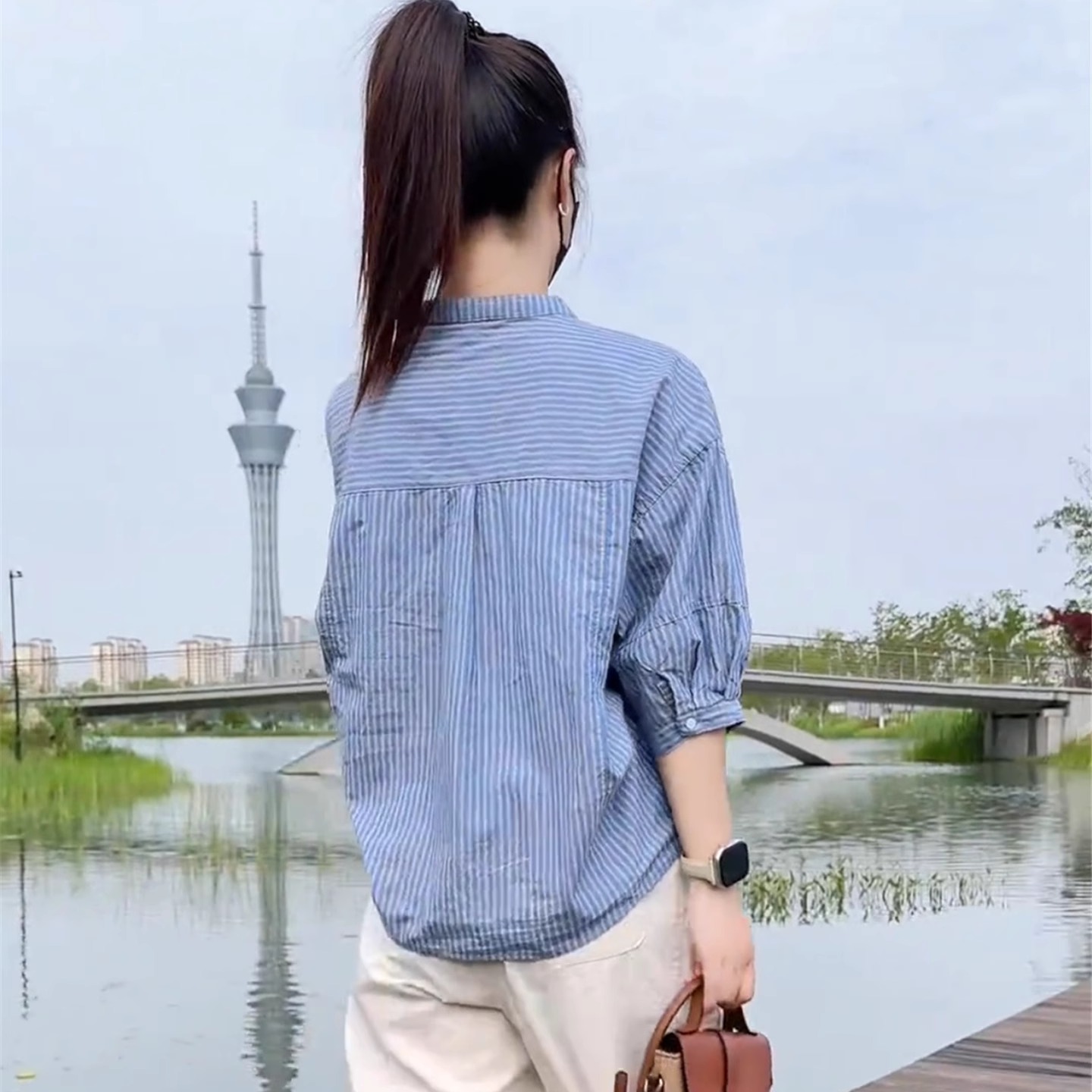 条纹衬衫 韩版 女上衣薄款 新款 宽松高级感小个子衬衣 2025夏季 法式
