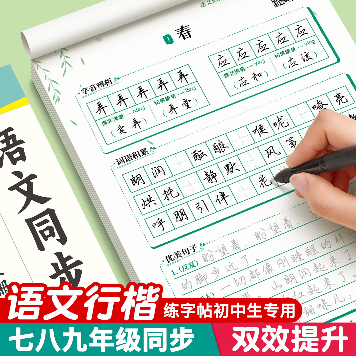 六品堂初中同步字帖初中生行楷字帖七八九年级上下册语文同步人教版 课本专用小升初写字练习初一二三临摹描红硬笔每日一练行书字贴