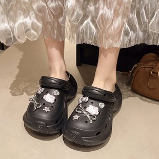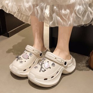 软底增高包头外穿拖鞋 夏季 防滑厚底不臭脚女 女士踩屎感新款 洞洞鞋