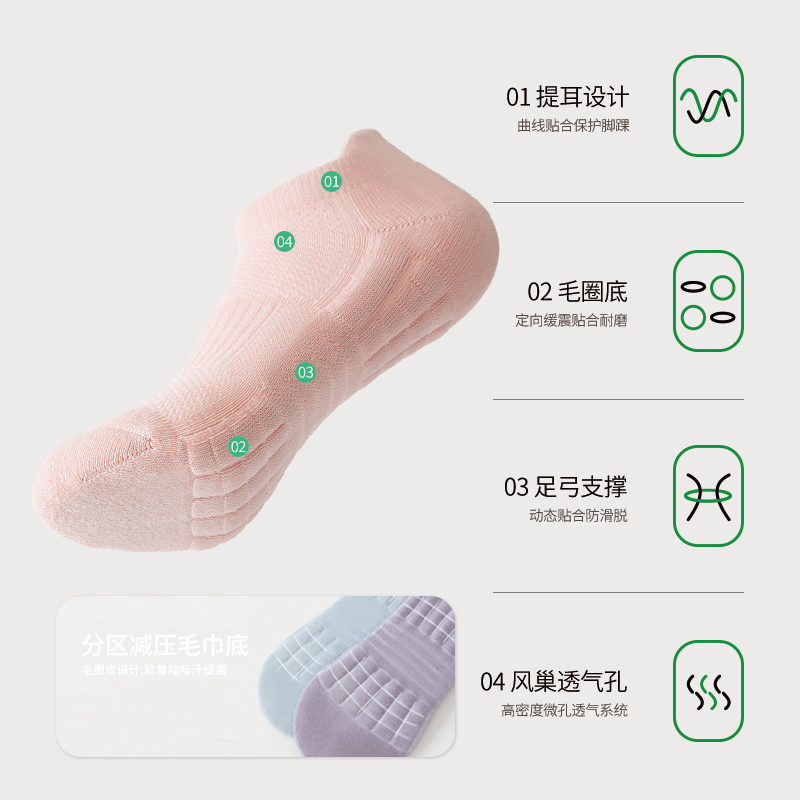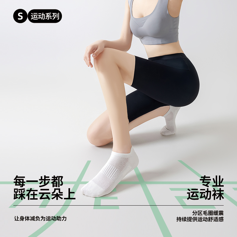 亲相见袜子女士秋季 防臭短袜 浅口跑步运动袜网眼透气船袜女款