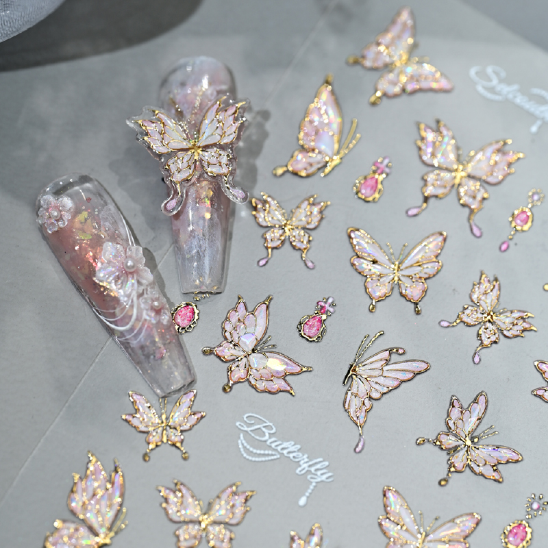网红琉光晶蝶高级细闪蝴蝶美甲贴纸金属质感流光百搭背胶指甲饰品