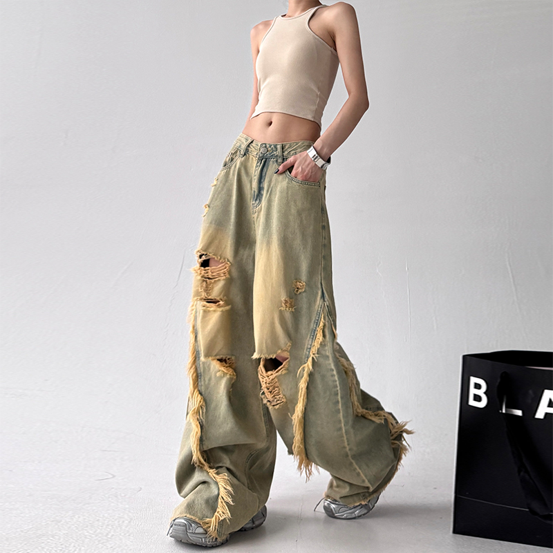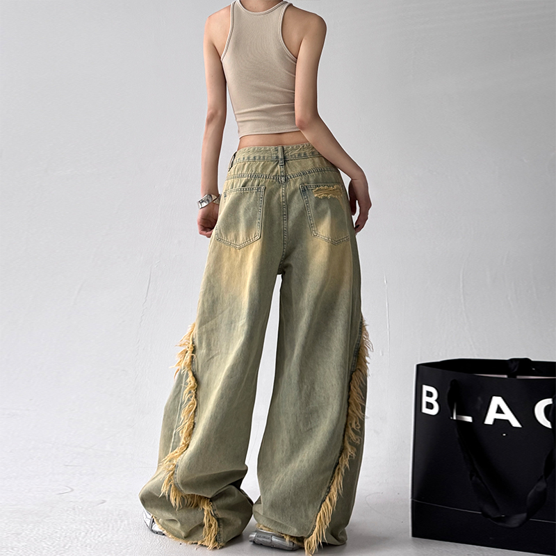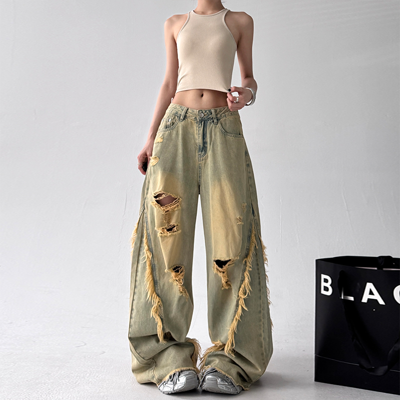 子 春夏高腰宽松显瘦梨形身材拖地阔腿裤 复古直筒牛仔裤 女2025新款