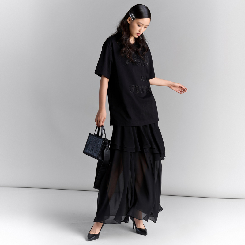 新款 休闲上衣尤缇2025夏季 百搭棉质短袖 TI重工烫钻字母T恤女装