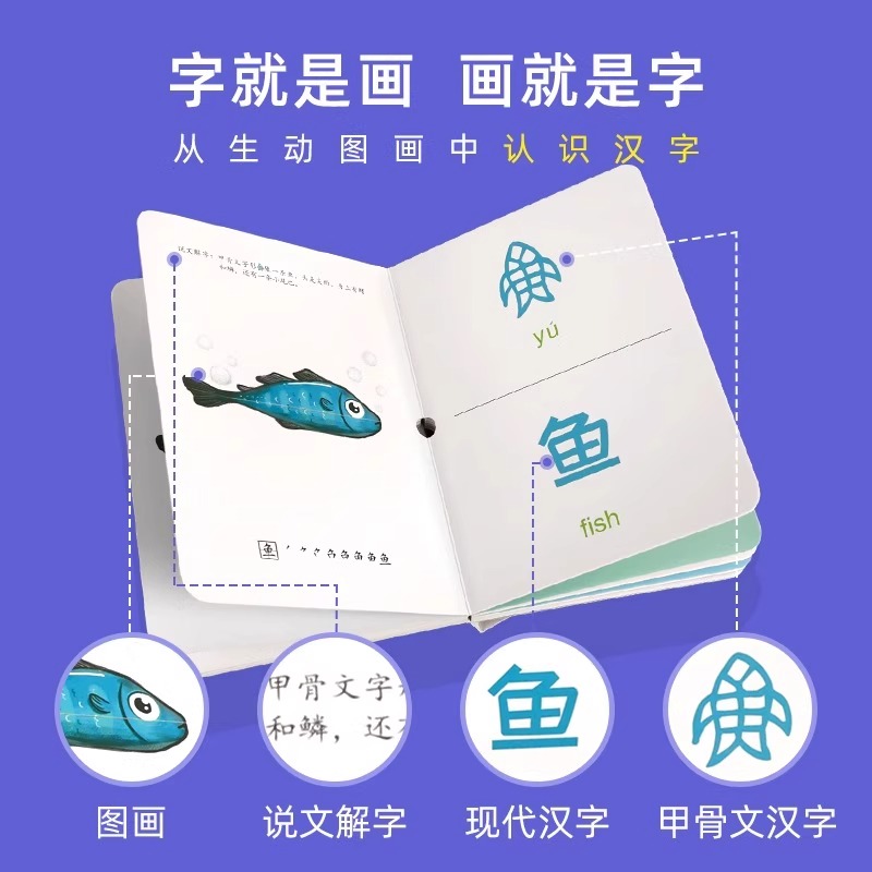 第一本汉字书卡片甲骨文 6岁幼儿园认字早教启蒙我 象形启蒙汉字翻翻书全套4册识字书幼儿认字宝宝汉字 演变翻翻书儿童学前看图3
