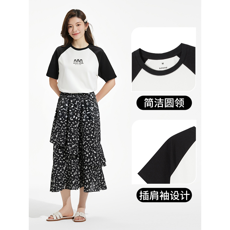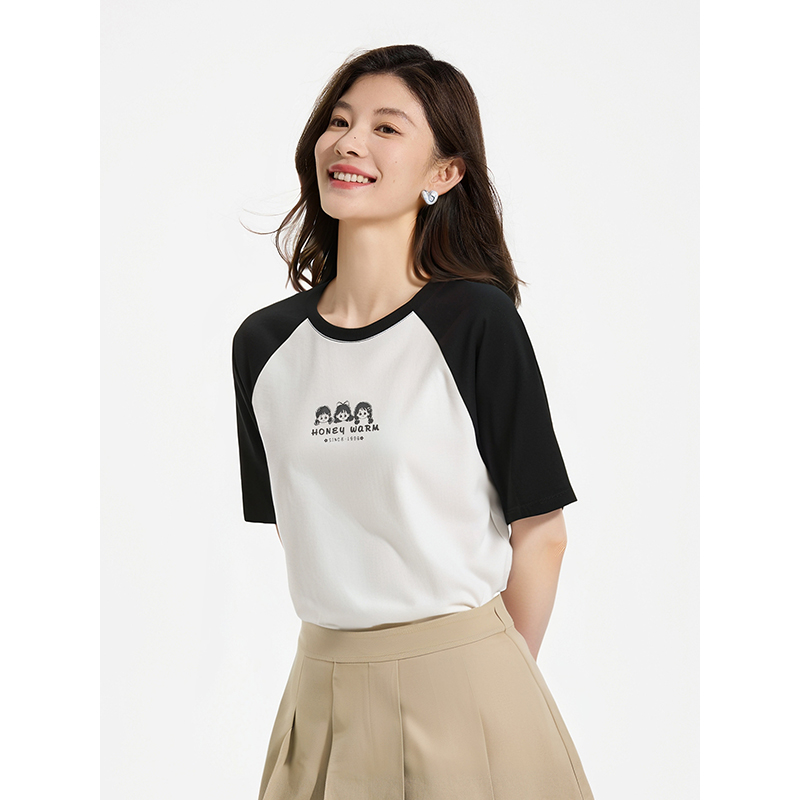 快乐女孩系列 印花插肩袖 热风短袖 新款 短T恤棉 T恤2025年夏季