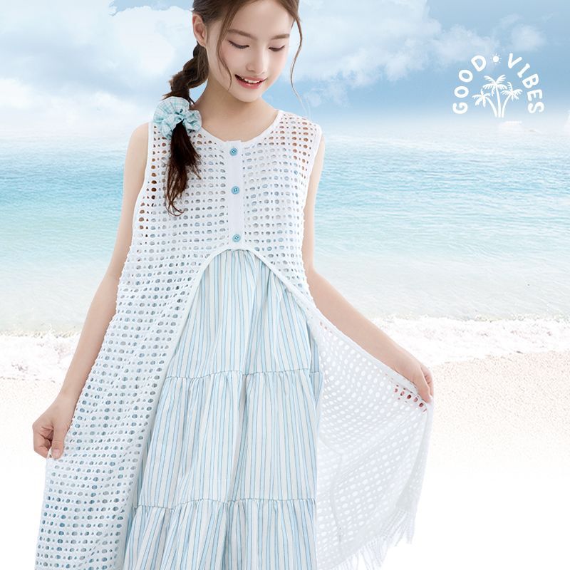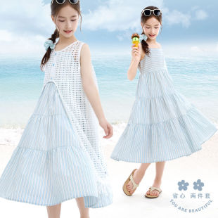 女童连衣裙2025夏装 裙子中大童度假风沙滩裙洋气公主裙2件套 新款