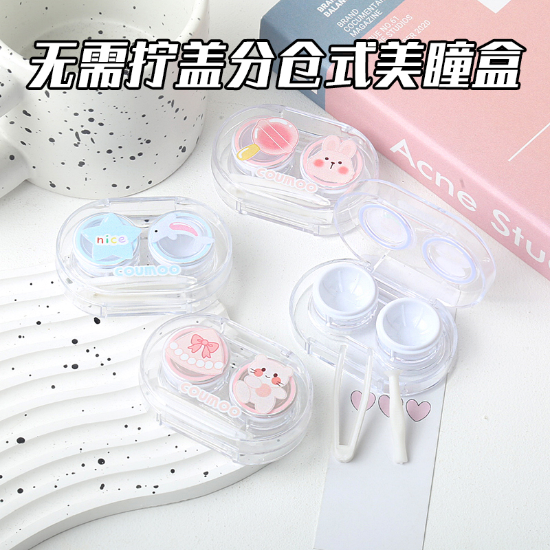 免拧盖隐形眼镜盒女简约透明便携近视眼睛伴侣盒美瞳护理收纳盒潮
