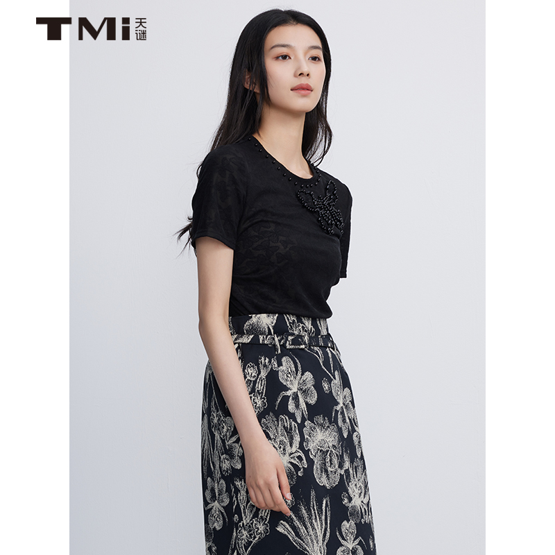 女修身 2025秋季 雪纺衫 长袖 显瘦百搭网纱蕾丝小立领打底上衣潮 时尚