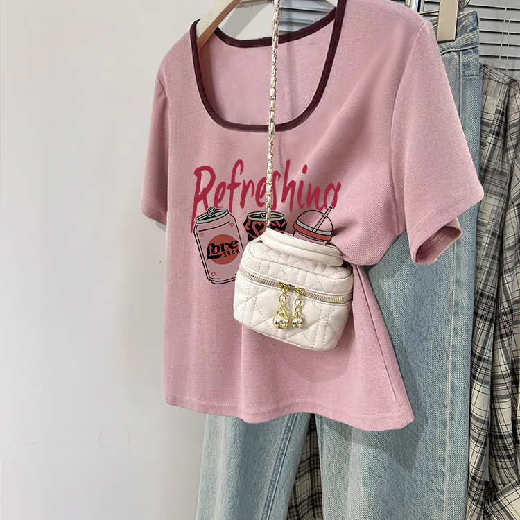 t恤女夏季 纯白色棉体恤打底衫 2025新款 修身 上衣短款 回力正肩短袖