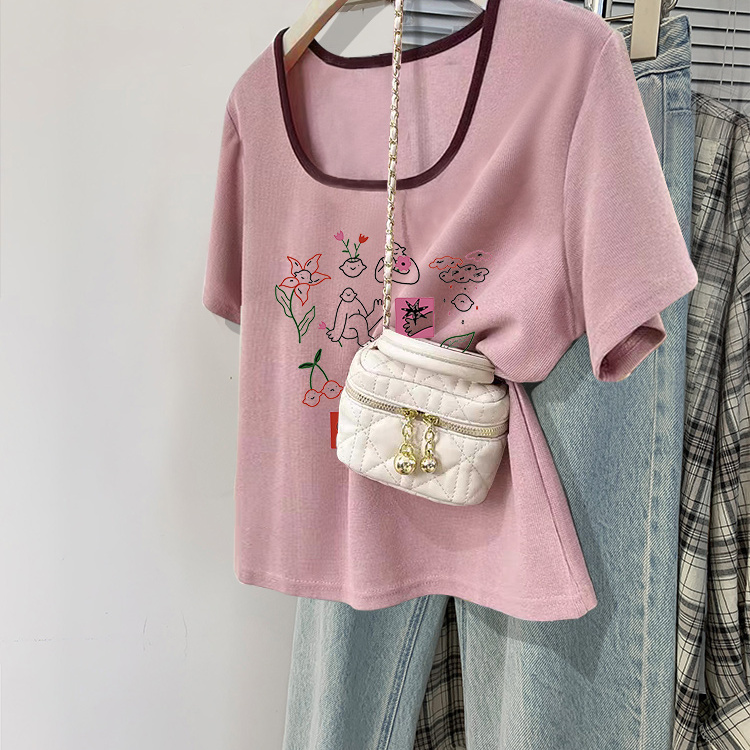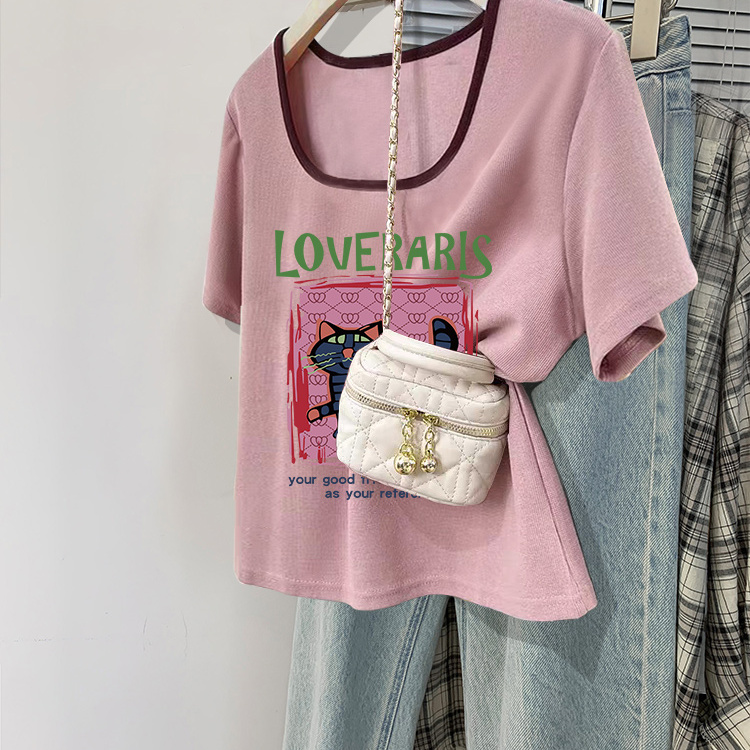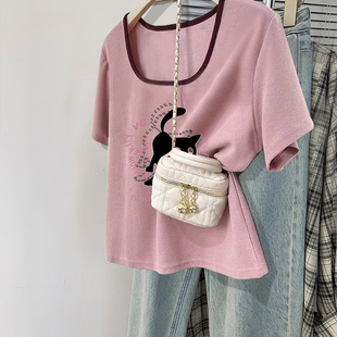 修身 打底衫 百搭上衣服 T恤女春秋内搭短款 设计感小众正肩纯棉长袖