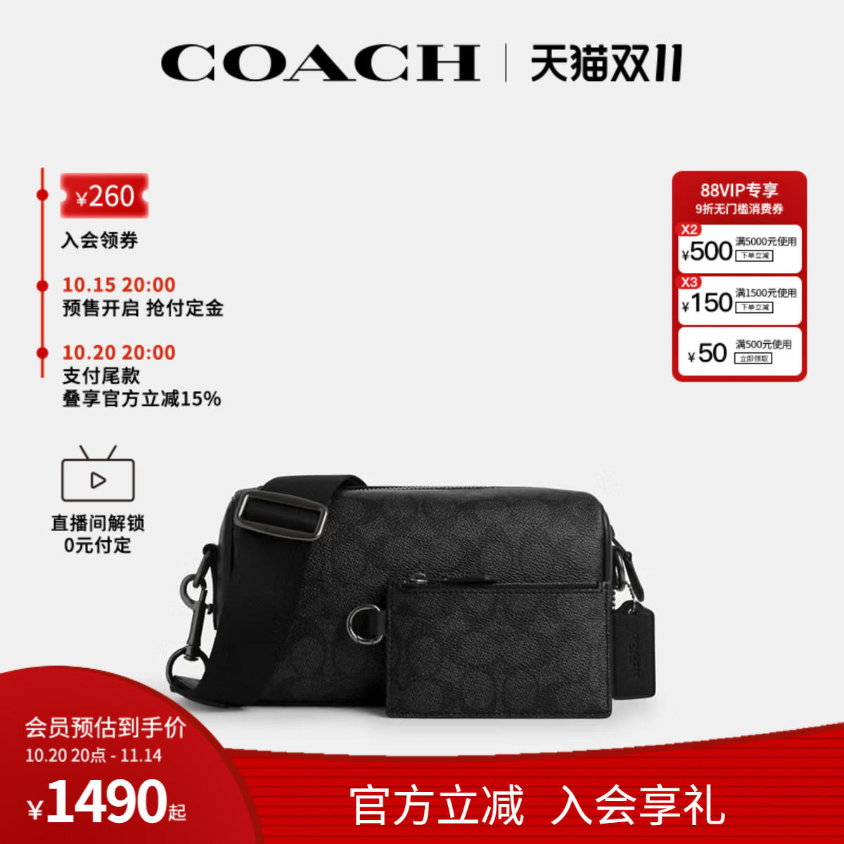 男士 奥莱款 老花PVC配皮单肩斜挎包CV762QBMI5 蔻驰官方 COACH