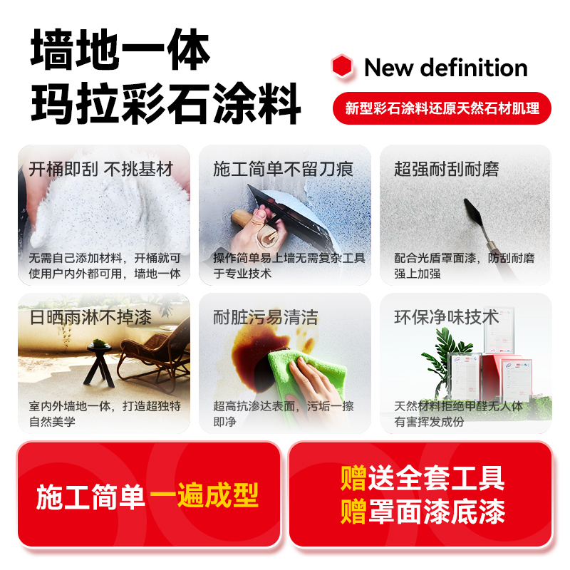 玛拉彩石艺术涂料免腻子室内墙面漆地面一体外墙马拉彩沙瑞卡彩砂