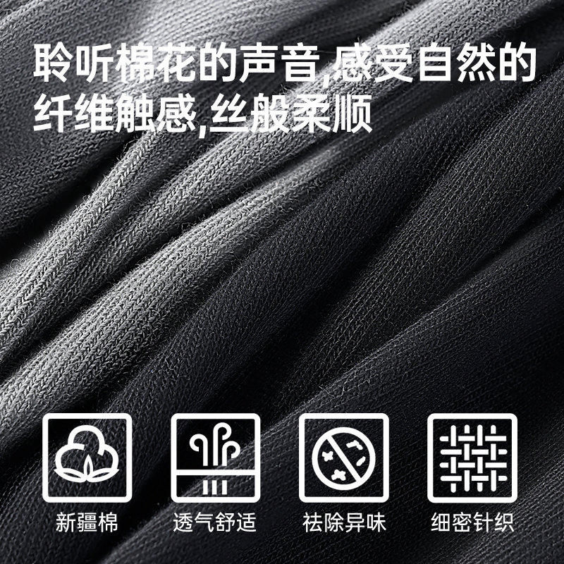 秋冬季 七匹狼袜子男士 纯棉吸汗防臭全棉透气7a抗菌中筒袜黑色男款