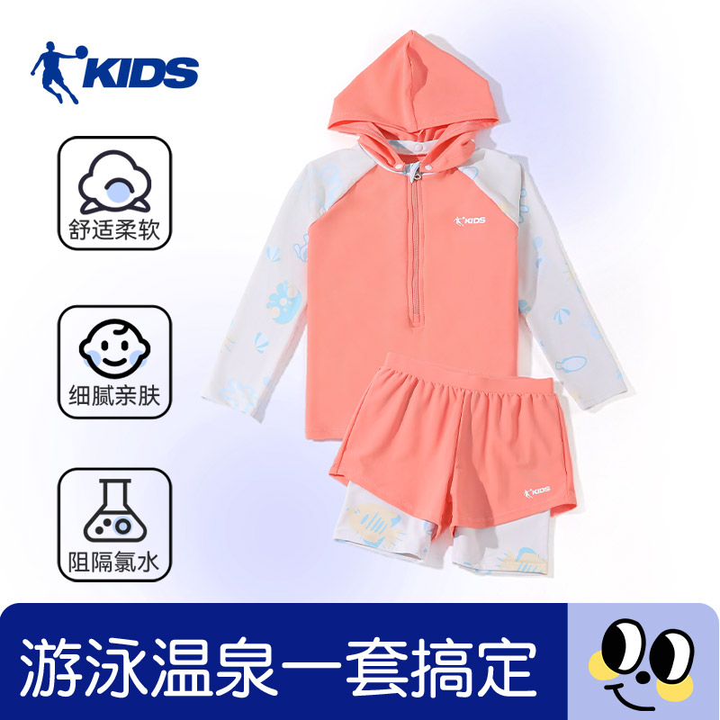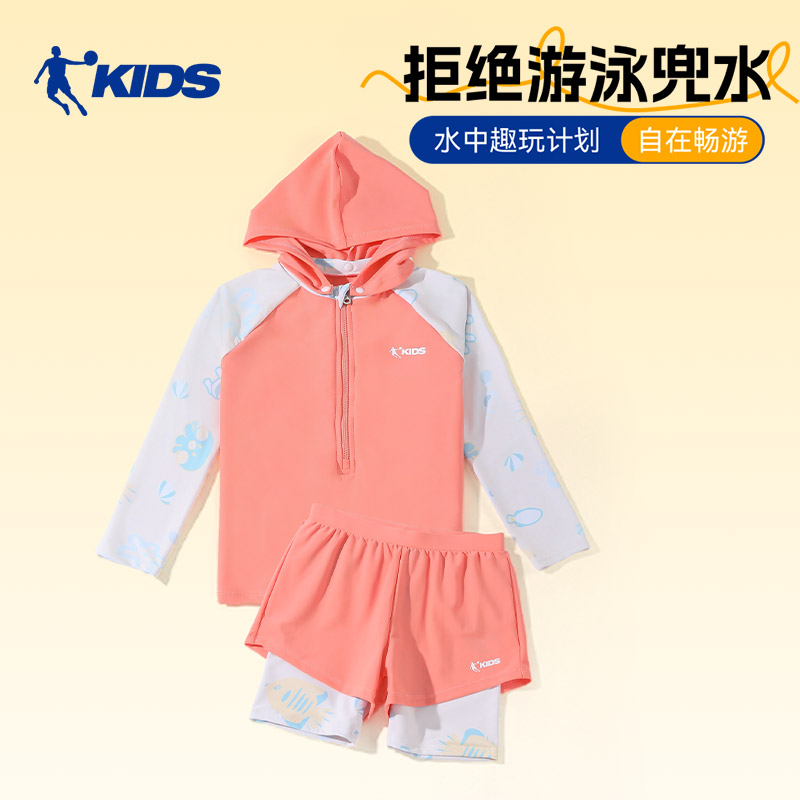 乔丹儿童泳衣女童2025新款 防晒 分体泳衣中大童专业训练游泳衣长袖