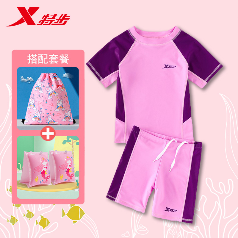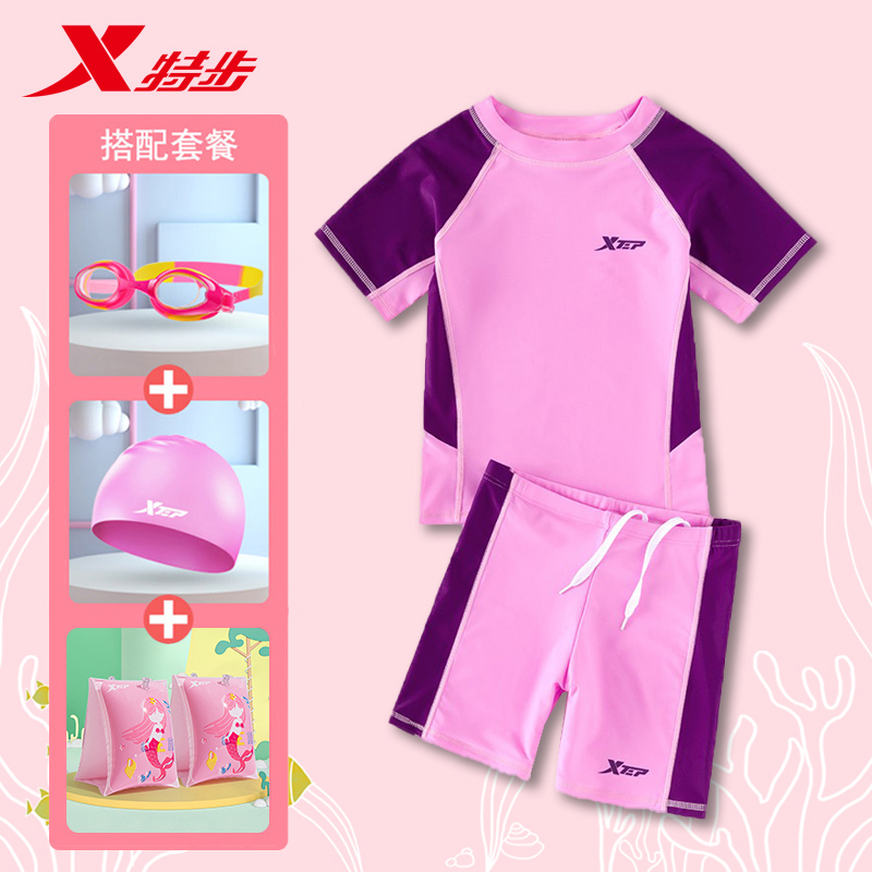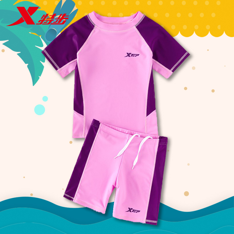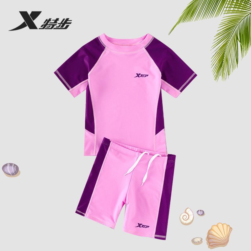 特步儿童泳衣女童2025新款 分体舒适防晒速干中大童专业游泳衣女孩