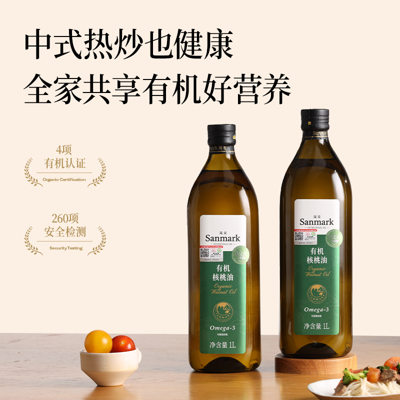 晟麦有机核桃油一级冷榨物理压榨宝贝孩子1L营养油官方品牌正品