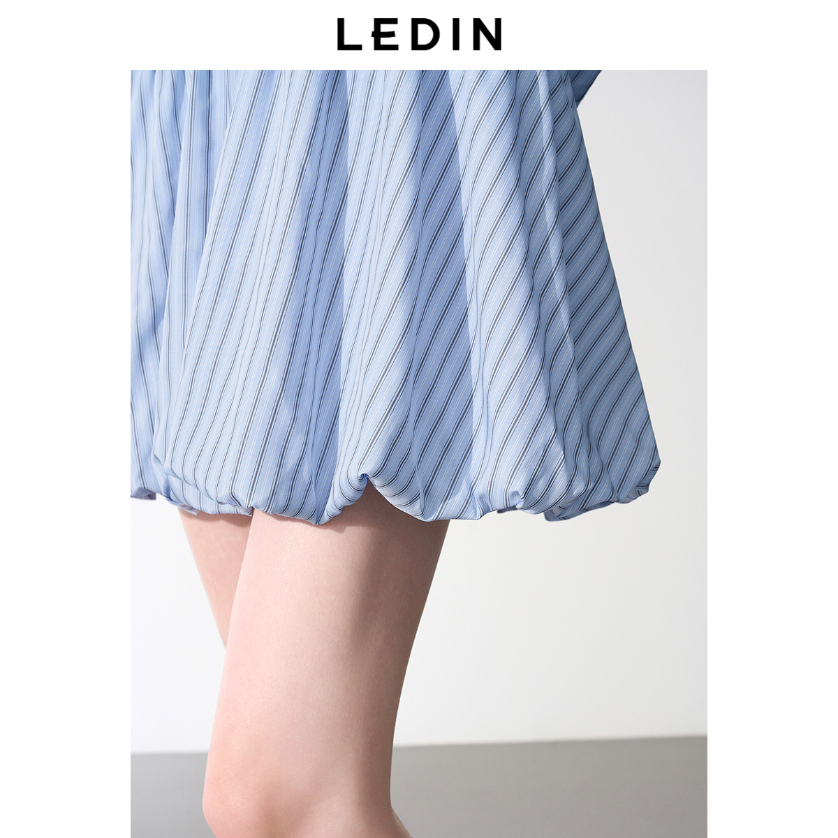 衬衫 硫酸铜蓝色长袖 裙 新款 乐町撞色翻领甜美花苞连衣裙女25年春季