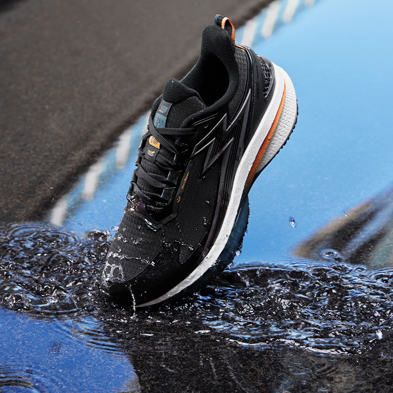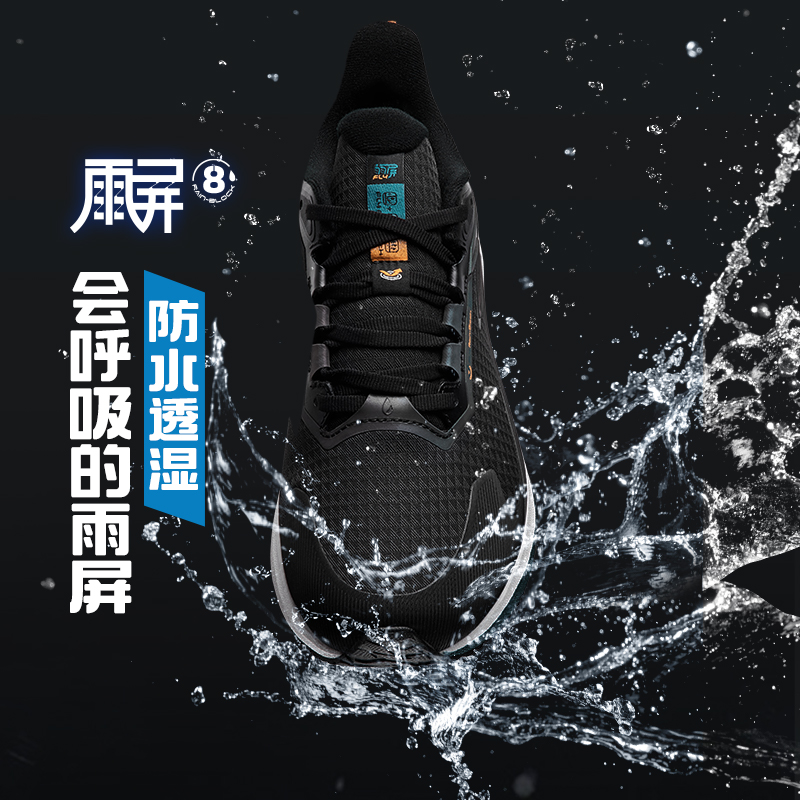 2025新款 子男款 秋季 皮面防泼水跑步鞋 休闲软底 黑色运动鞋 回力男鞋