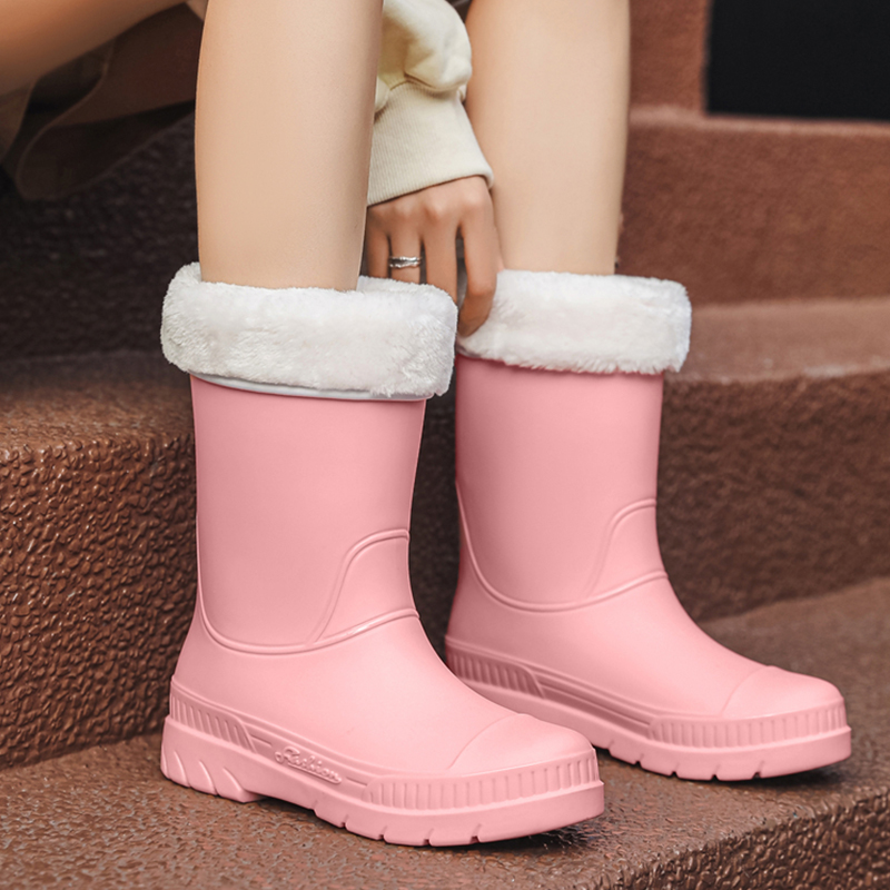 轻便雨靴户外徒步厨房洗车保暖胶鞋 雨鞋 防水防滑日式 中筒水鞋 女款
