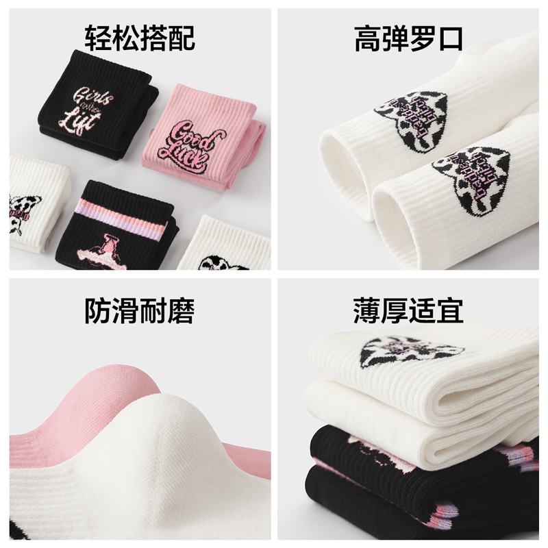 森马袜子女中筒棉袜透气个性 心动信号 学生字母女生潮袜无骨秋冬
