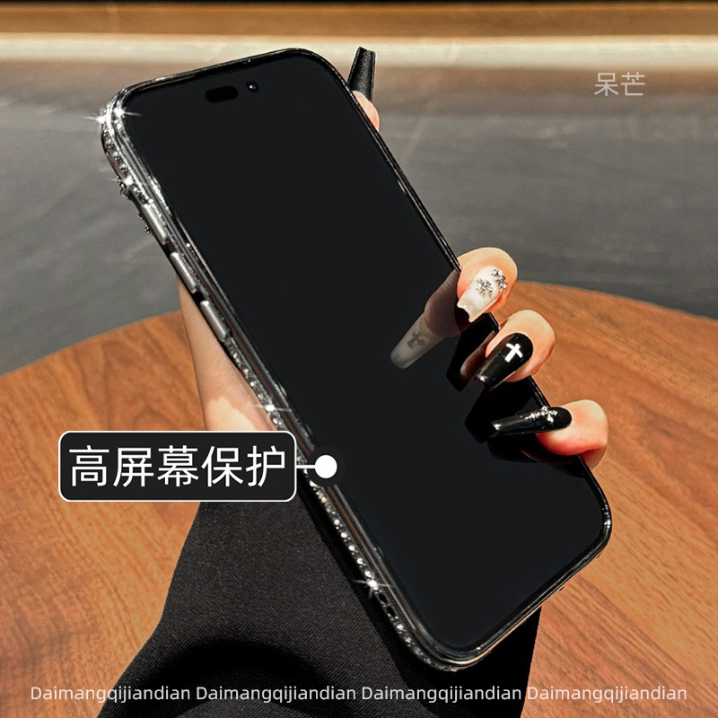 高端闪粉边框羽纱ip适用苹果16promax手机壳闪钻15pro ins超火夏天情侣17 max不会撞壳iphone14全包防摔13新款