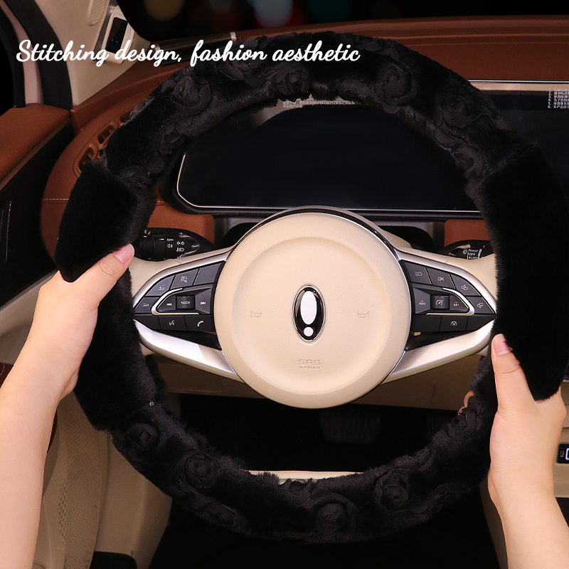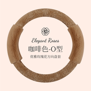冬季 通用汽车方向盘套女士高级感可爱汽车秋冬把套 毛绒玫瑰花新款
