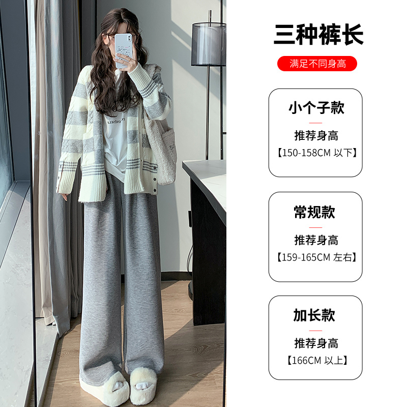 宽松直筒小个子保暖糯米裤 白色山羊绒阔腿裤 女秋冬加绒2025年新款