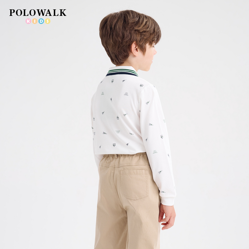 男童polo领长袖 2025秋冬新款 T恤学院风男户外 新品 POLOWALK童装