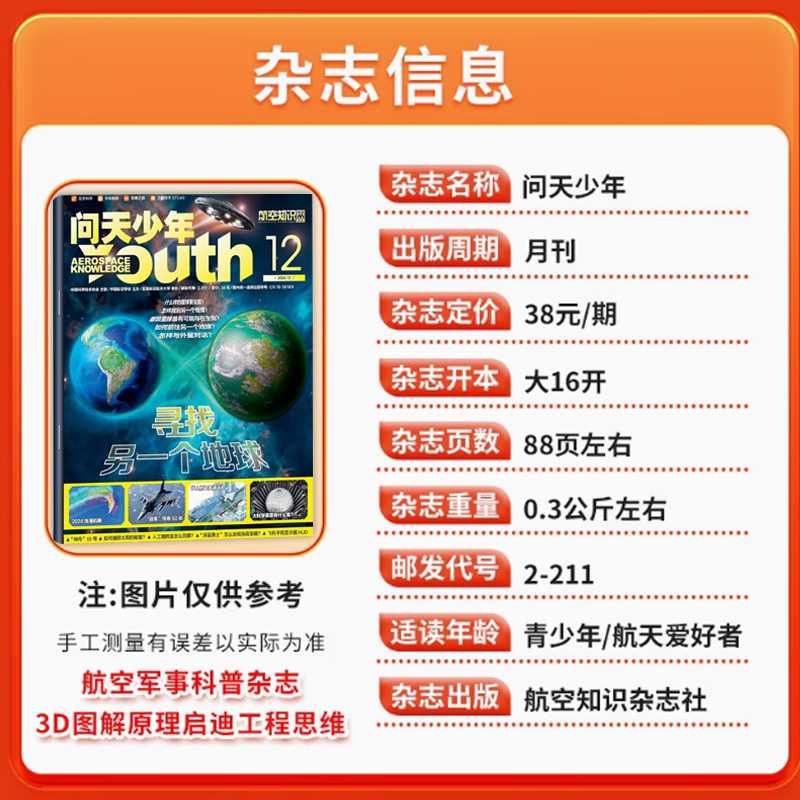 问天少年杂志2024年12月 航空知识出版 寻找另一个地球 十月期刊 附赠航空拼插模型 现货