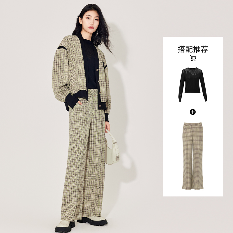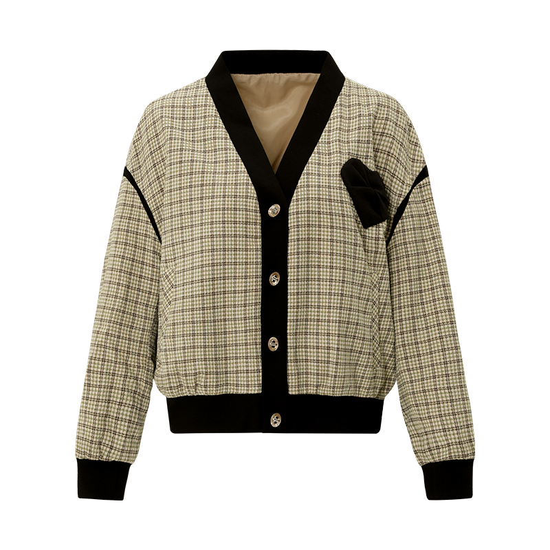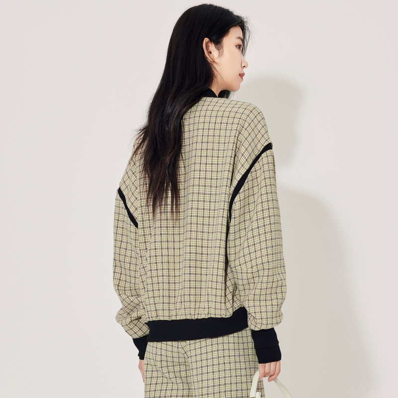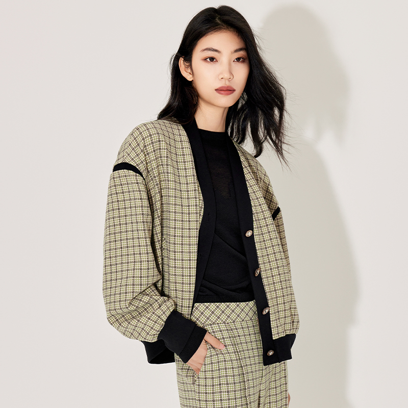 气质 时尚 傲丝度格纹拼接小香风外套女春秋新款 高级感轻熟风法式