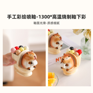 卡皮巴拉水果叉家用儿童安全不锈钢果签甜品可爱小叉子套装 高级感