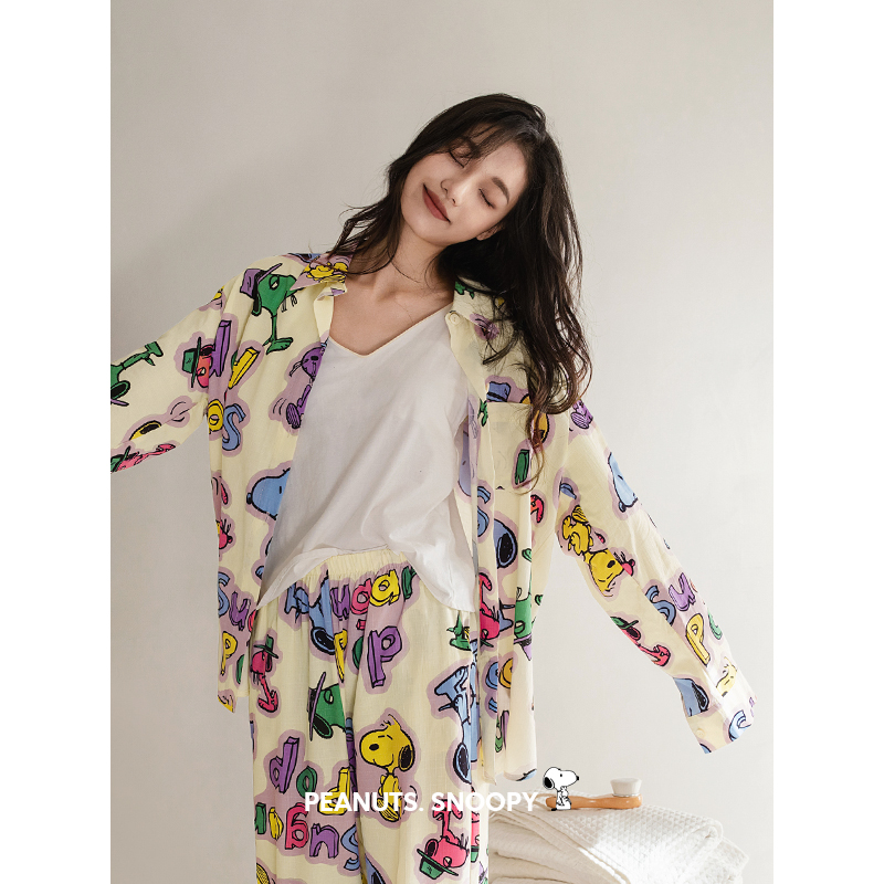 可爱卡通开衫 贝妍史努比睡衣女春秋新款 套装 长裤 家居服 柔软棉长袖