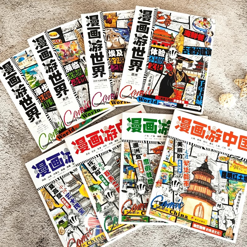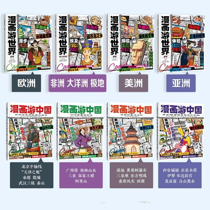 中国地理百科全书带着孩子走进山水画卷跟着漫画纵横南北穿越古今足不出户明天出版 给孩子 社 漫画游世界全套8册 漫画游中国