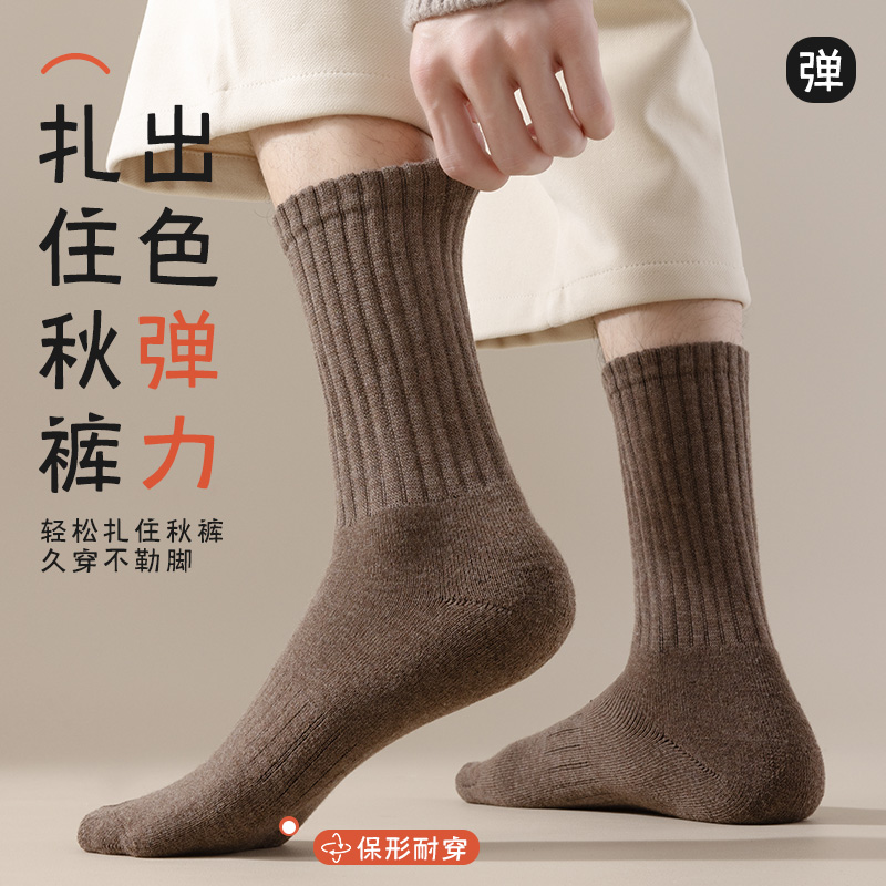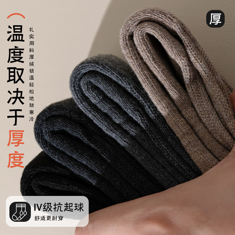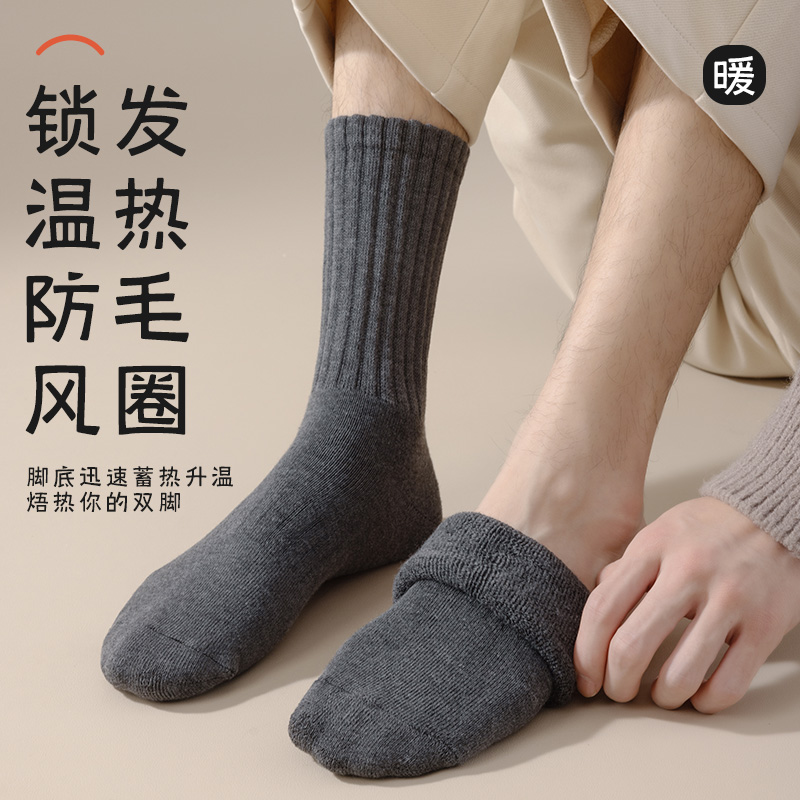 长袜 中筒袜加绒加厚保暖毛圈长筒袜冬天黑色男士 厚袜子男款 秋冬季