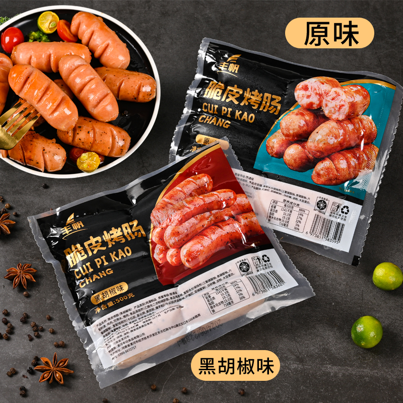火山石正宗烤肠批发烧烤原味脆皮肉肠地道黑胡椒台湾热狗香肠风味