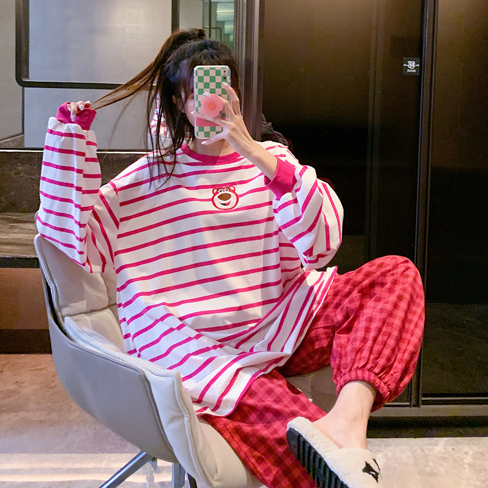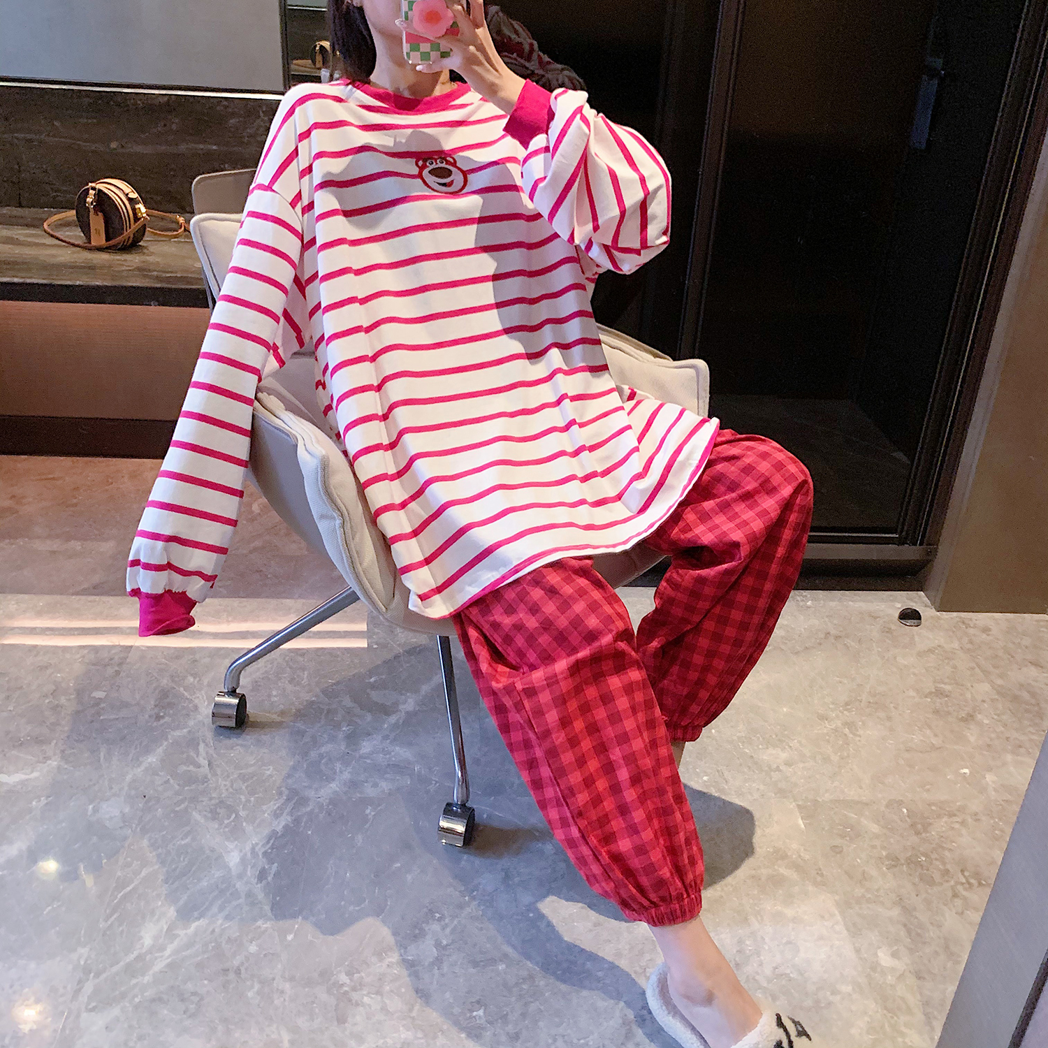 长袖 全棉大码 套装 女款 家居服 简约休闲秋季 芬腾春秋睡衣女纯棉开衫
