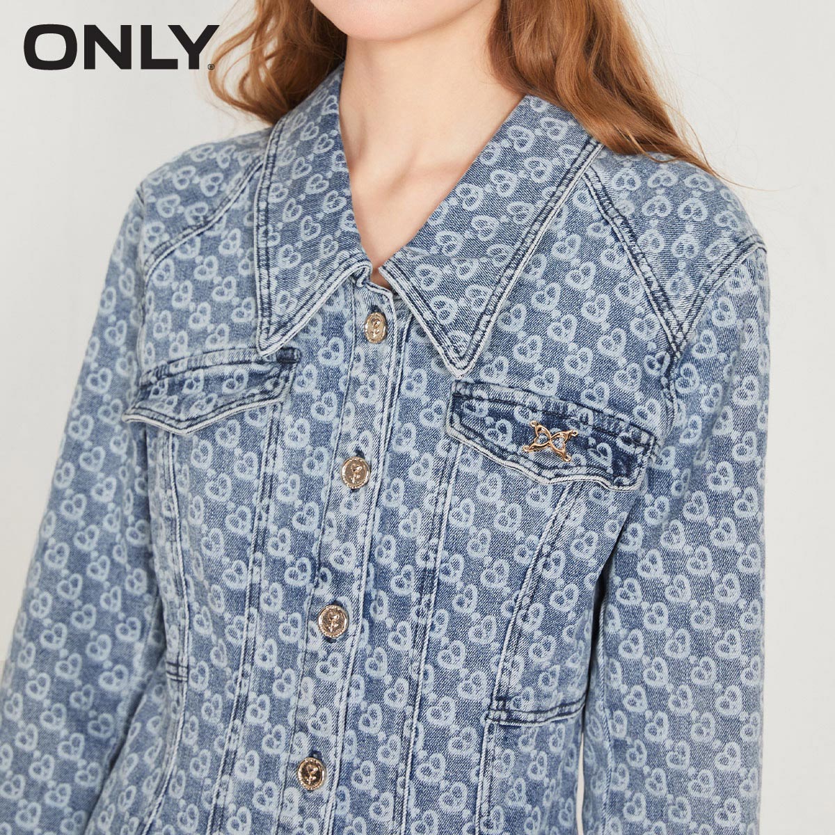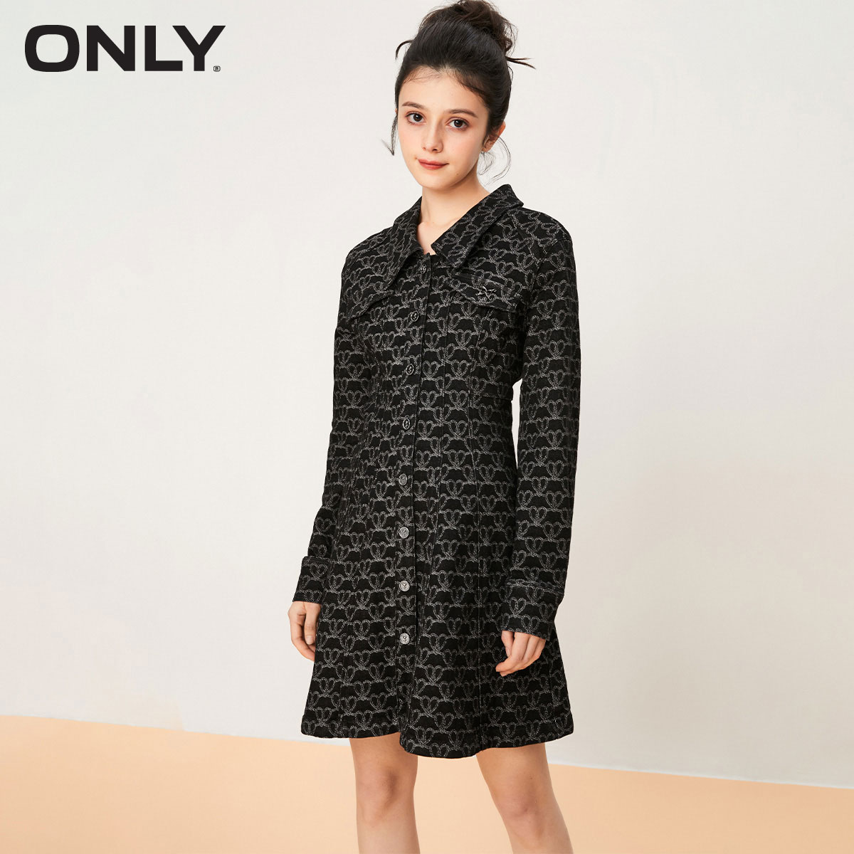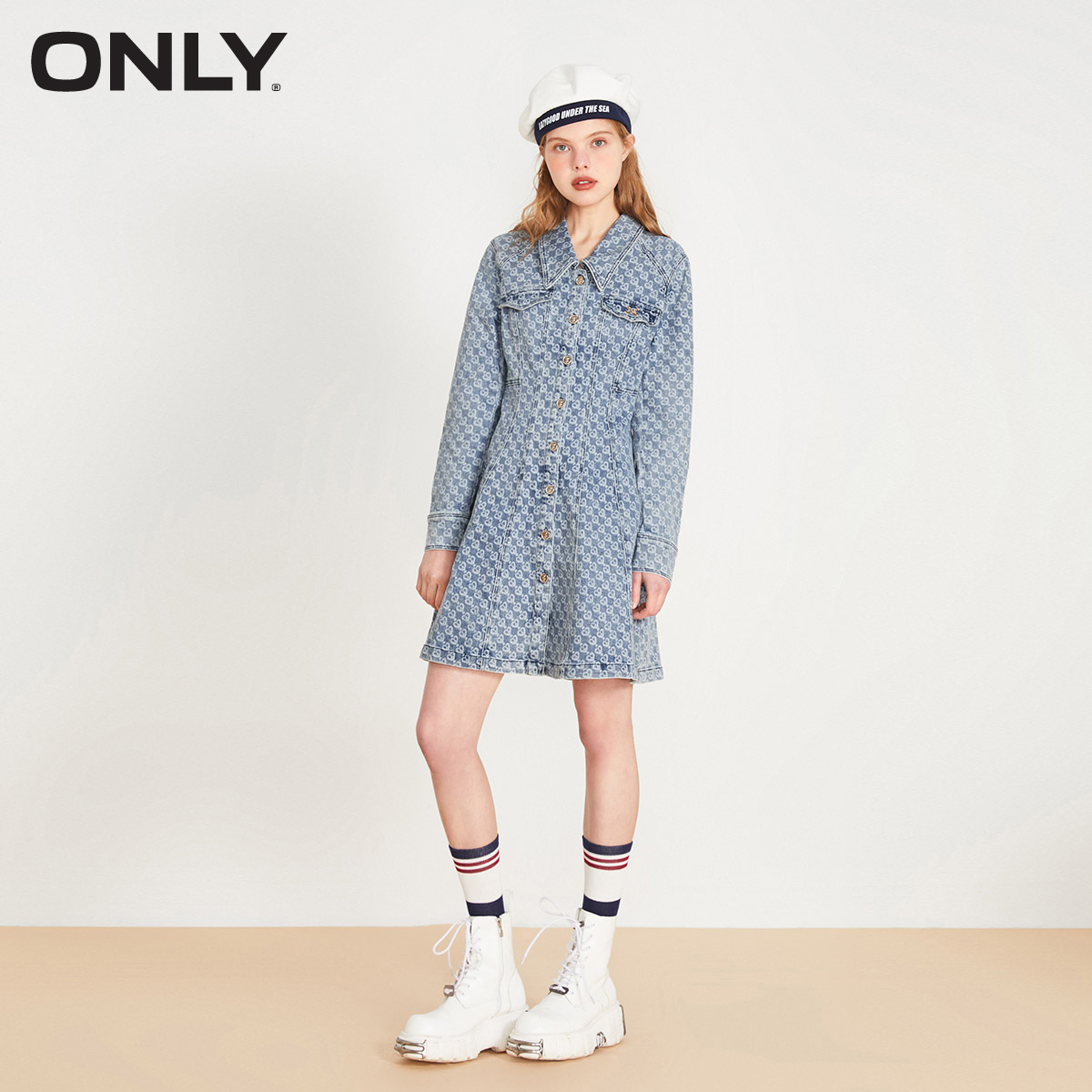 满印收腰A字短款 时尚 秋季 牛仔连衣裙女 ONLY奥莱清仓