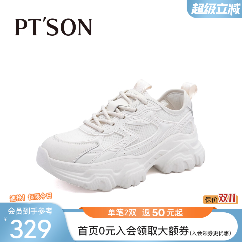 百搭休闲跑步鞋 鮀品运动鞋 厚底小白鞋 加绒轻便老爹鞋 子 女秋冬新款