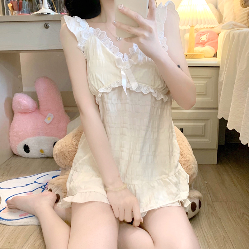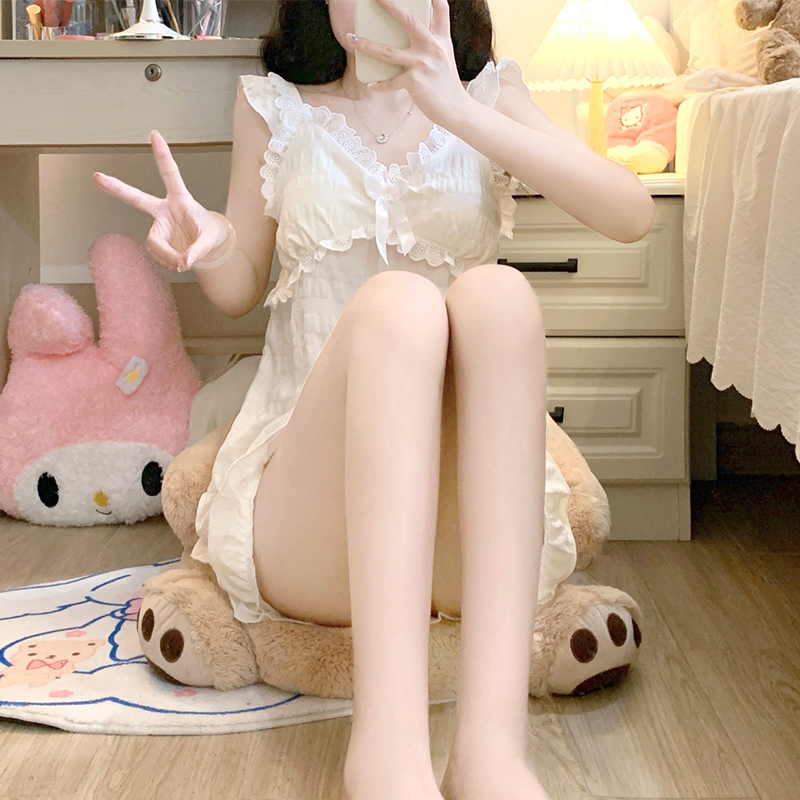 薄 带胸垫甜美学生家居服套装 温柔风睡衣女夏季 吊带梭织棉2025新款
