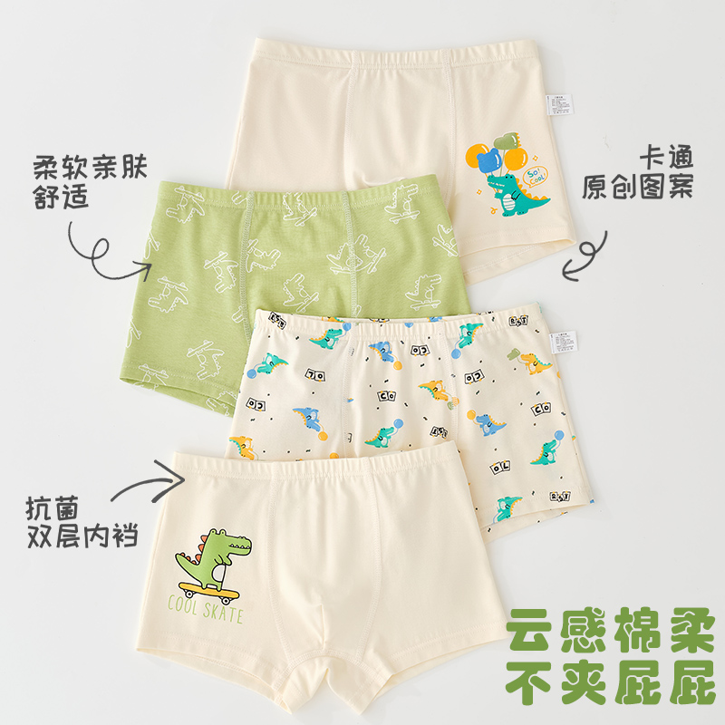 100%男宝宝全棉小童大童底裤 男孩四角短裤 儿童纯棉平角裤 男童内裤