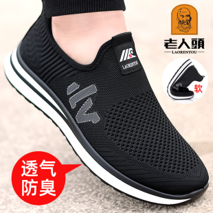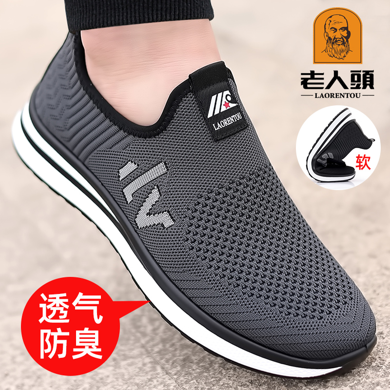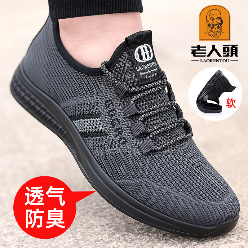 网面鞋 爸爸鞋 2025春季 透气中老年运动休闲黑色男鞋 新款 老人头男士