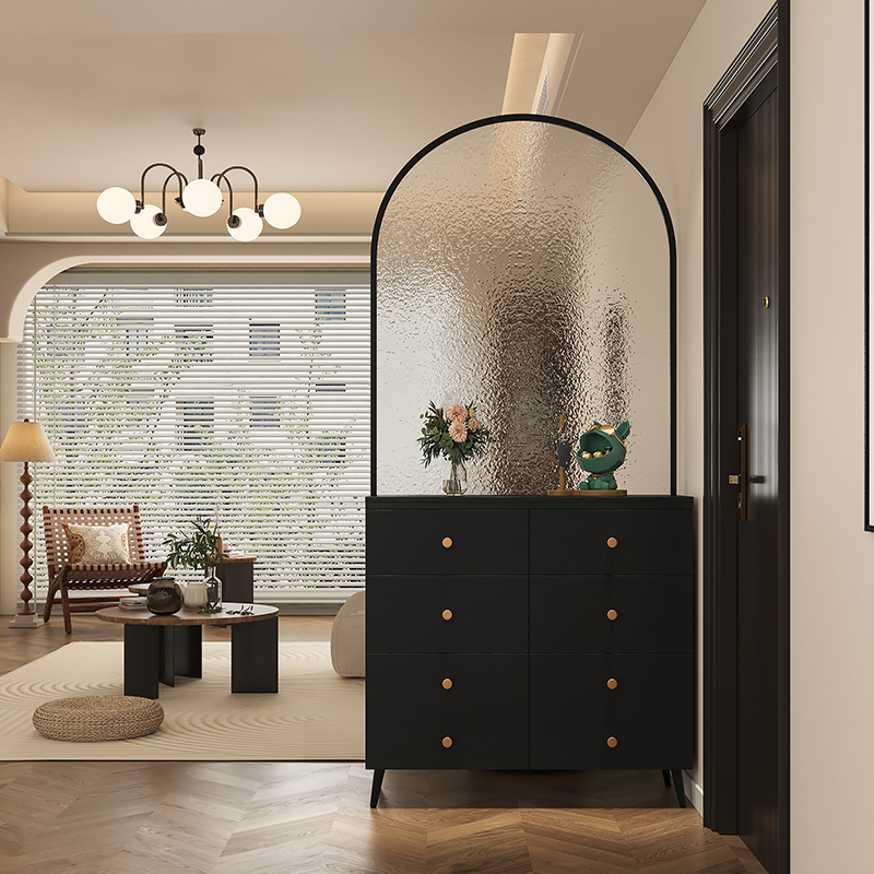 复古风入户玄关柜鞋 柜一体正对门口铁艺玻璃屏风隔断柜客厅门厅柜