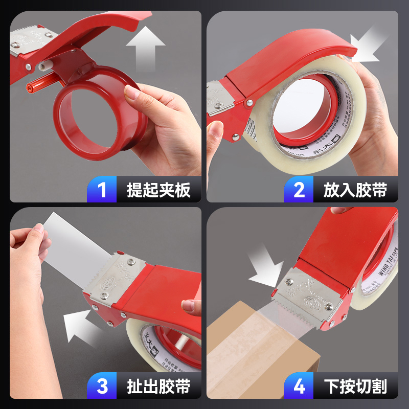 金陵赋金属封箱器6cm手握式 打包器 加厚铁质胶纸切割器大号透明胶布切割机5cm透明胶带座快递物流办公打包包装