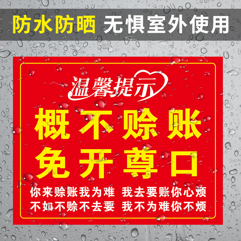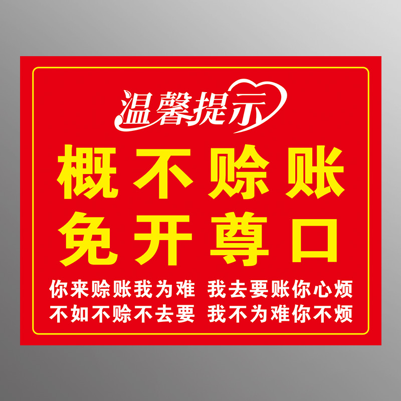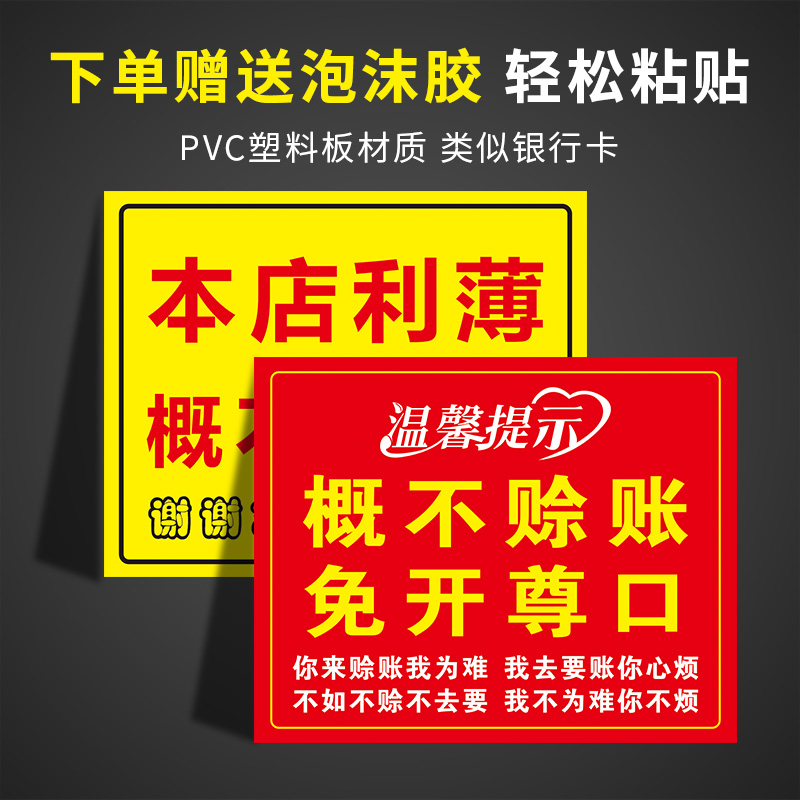概不赊账温馨提示牌免开尊口谢绝还价请您先付款 小本经营标识挂牌墙贴定制PVC塑料板pp背胶贴纸商店贴墙标语
