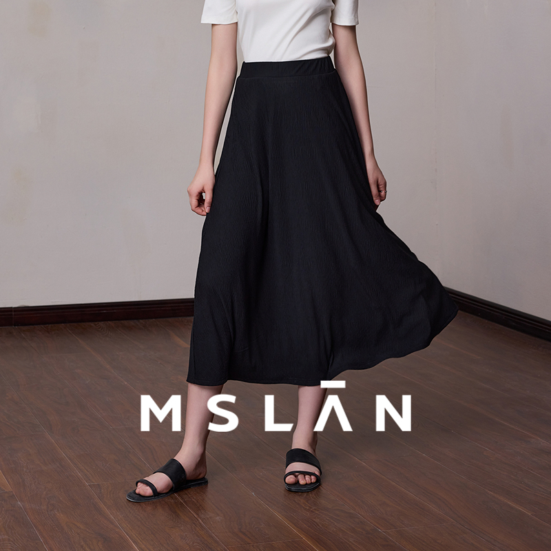 松弛淡人风黑色半身裙 MSLAN褶皱肌理垂感伞裙夏季 重工垂垂裙
