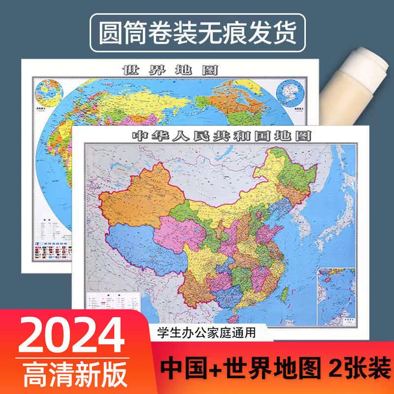 中国地图和世界地图全2张2025年高中生初中学生办公室家庭客厅挂图背景墙全国行政大尺寸墙贴挂画墙面装 饰画76×106cm厘米实用