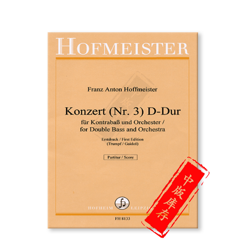 Bass FH8133 Hoffmeister Major 霍夫曼斯特乐谱 Concerto Orchestra D大调第三协奏曲 Double 低音提琴管弦乐队
