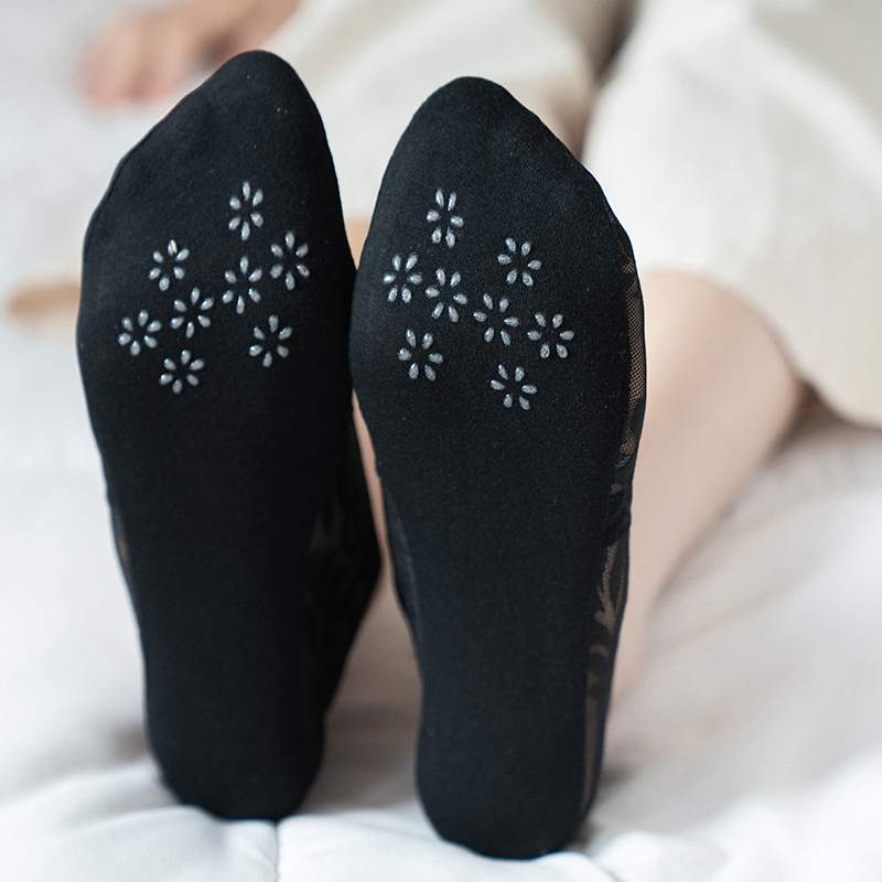 深口超薄镂空蕾丝船袜棉底硅胶防滑不掉跟夏天透明网纱韩国袜子女