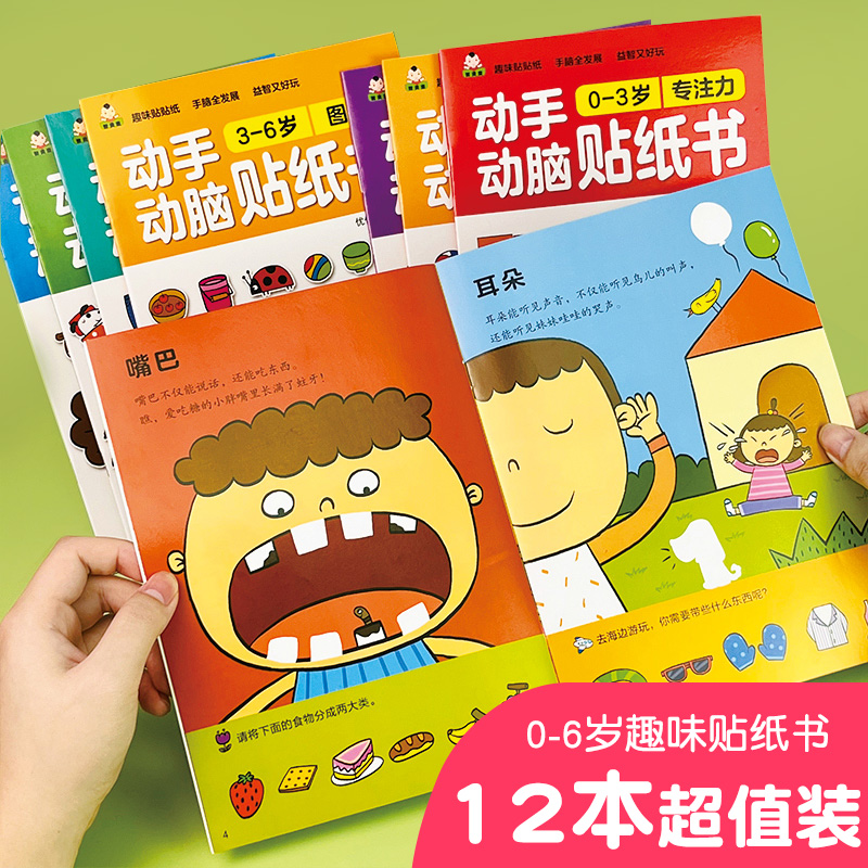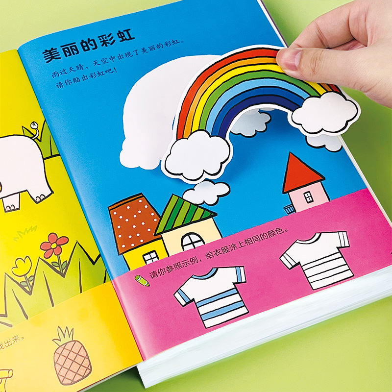 6岁宝宝全脑开发益智粘贴画4岁5岁幼儿园男女孩记忆力观察力训练幼儿早教玩具 儿童专注力训练贴纸书全套动手动脑趣味贴贴画