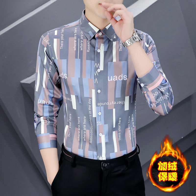 加绒加厚衬衫 韩版 男士 设计感高级免烫男装 休闲保暖衬衣 长袖 秋冬季